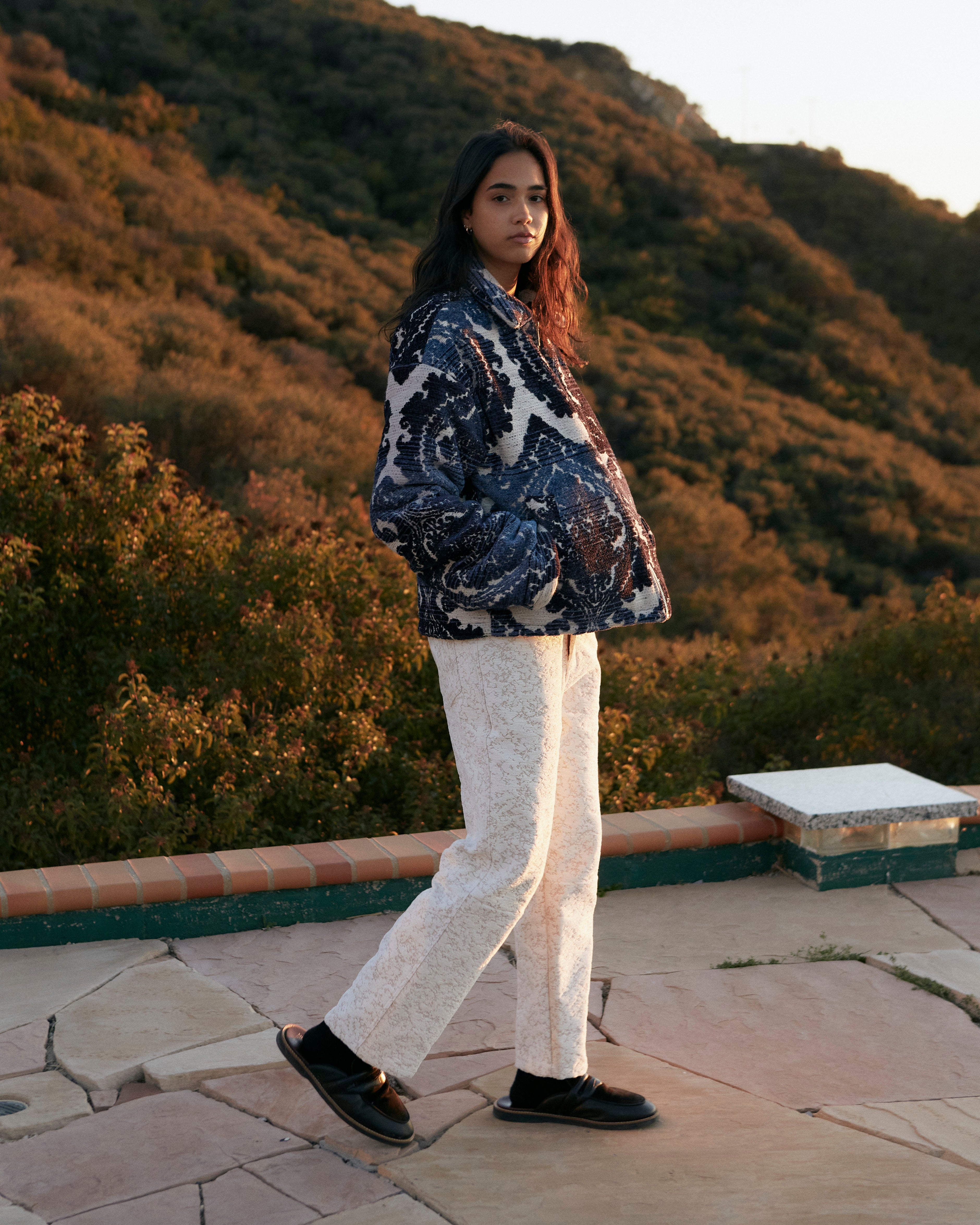 His inspiration behind the vintage-like textiles he uses are drawn from his childhood visits to thrift stores. To search through racks of clothing in order to find the most perfectly worn piece to add to his wardrobe brought him pleasure and a sense of reward. When he decided he wanted to venture into the fashion industry, he wanted to bring the same warm, comfortable feeling of going into a thrift store to find that unique piece that speaks to you, to everyone.